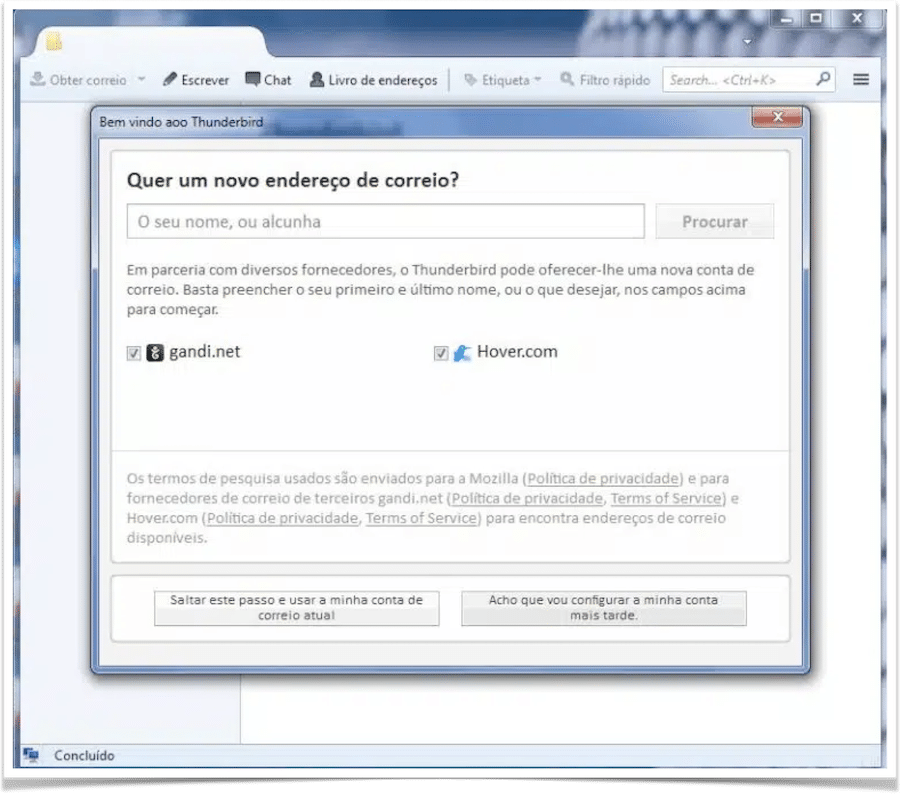 Ignore a sugestão de criação de uma nova conta de correio e clique na opção Saltar este passo e usar a minha conta de correio atual.