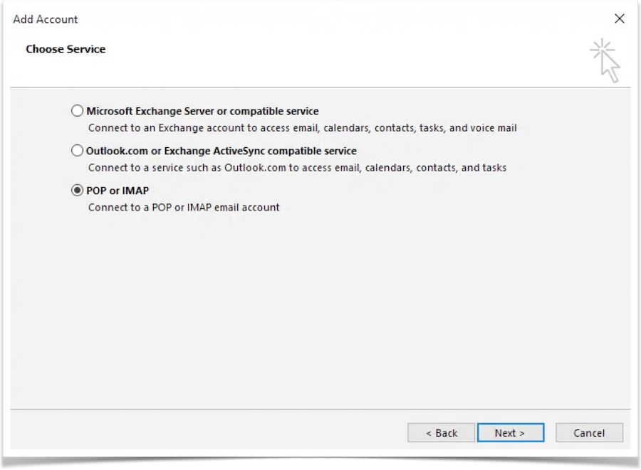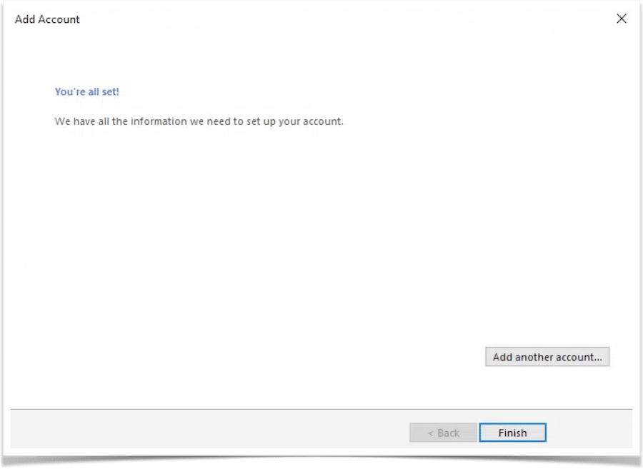 Responda Sim à pergunta sobre se deseja configurar uma nova conta de email no Outlook. Clique em Next.