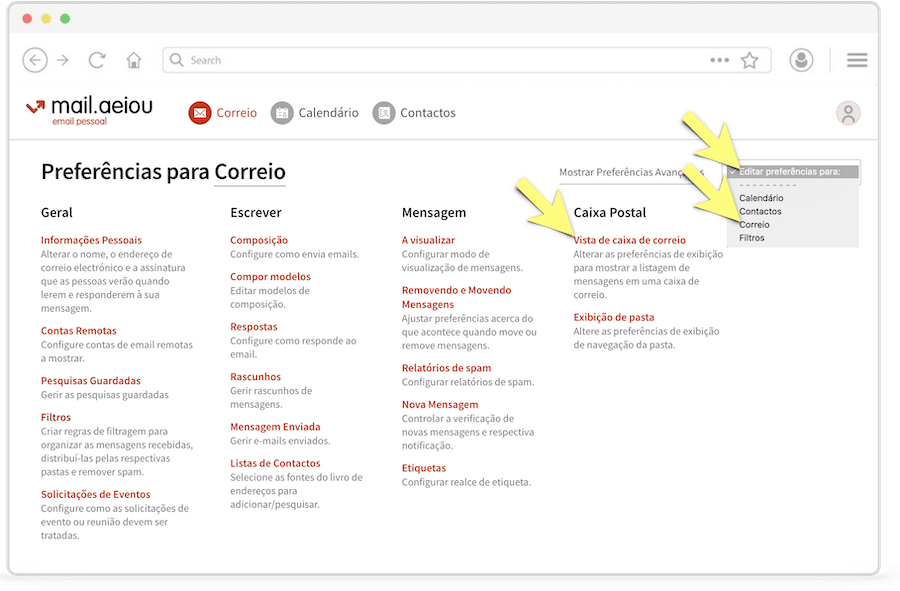 Se necessitar de informações sobre as pastas do seu antigo email ou sobre visualização de anexos, consulte por favor a página “Onde estão as minhas Pastas? E os meus Anexos?“, no seguinte endereço: