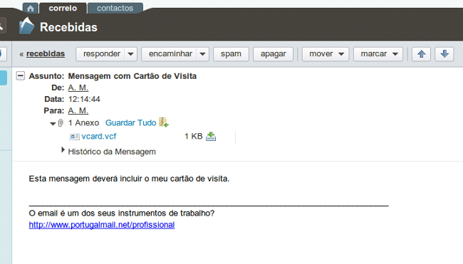 Com esta opção activa, as suas mensagens irão conter, em anexo, um ficheiro do tipo .vcf. que o destinatários das suas mensagens poderão utilizar para guardar nos seus contactos.